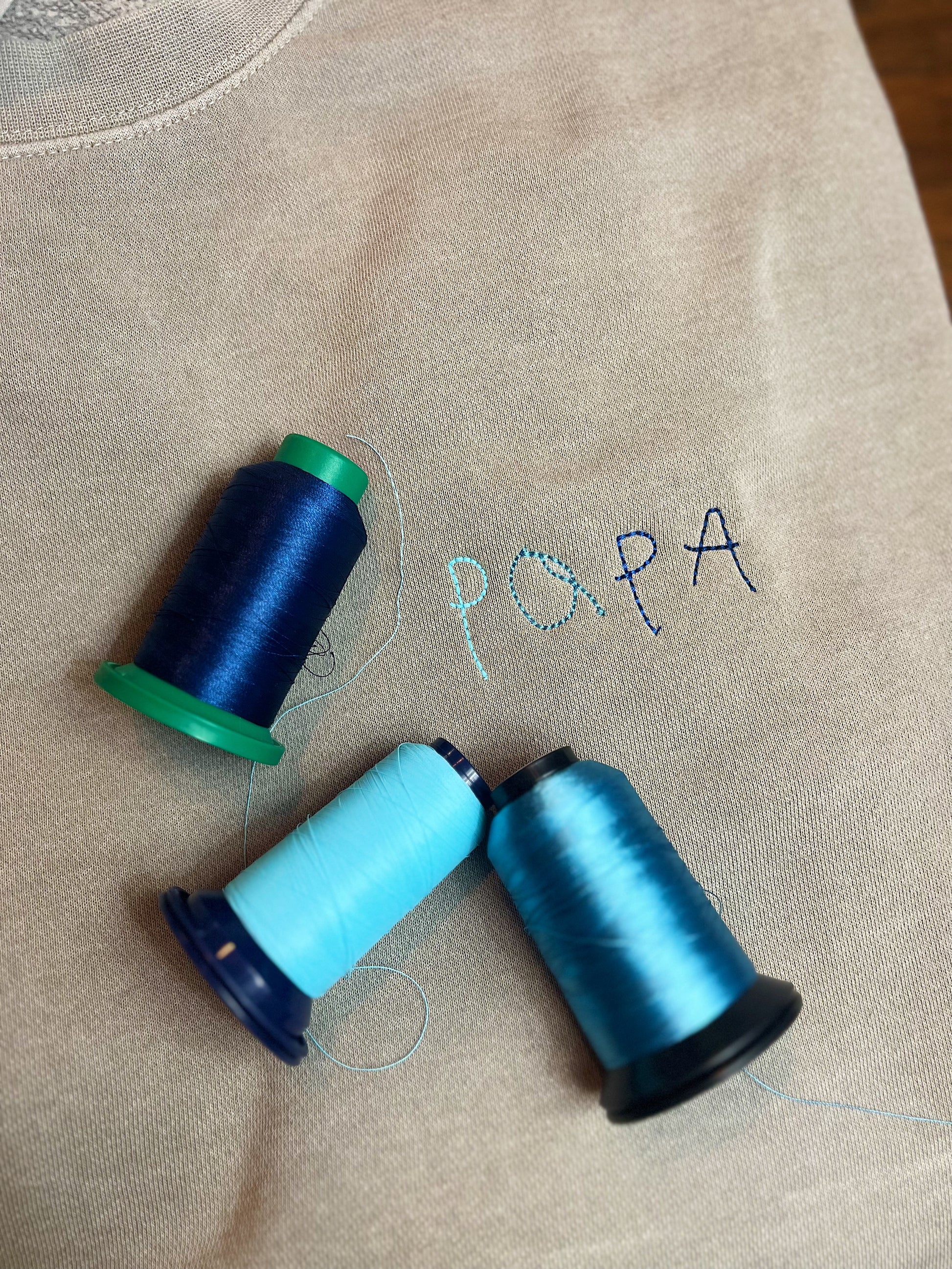 If you are wanting a different colored thread, please include the color in the box at the BOTTOM of the page called "Contact form". Add the name your order is placed under and the color of thread you would like to add.