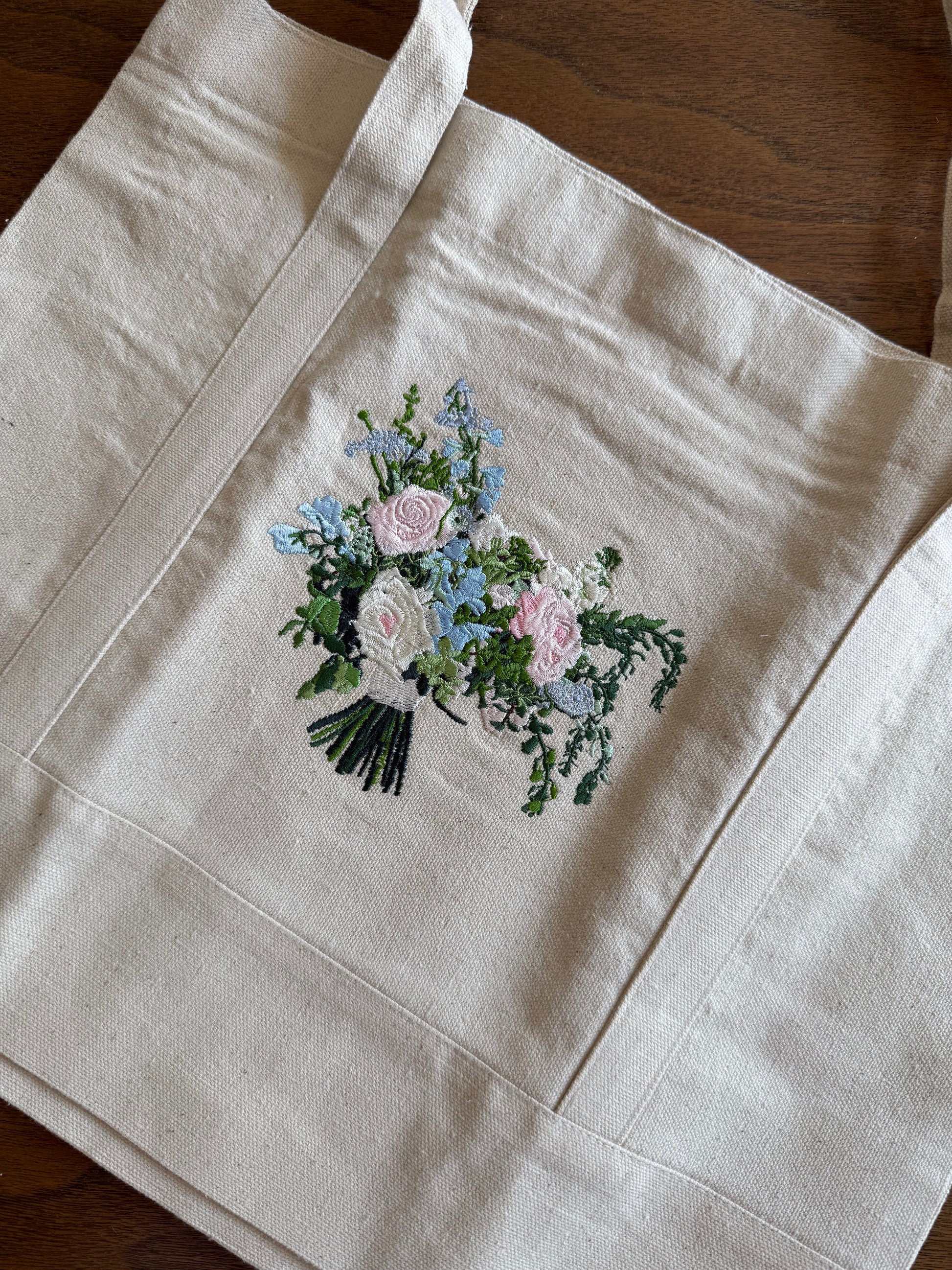 Custom Embroidered Wedding Bouquet Canvas Tote