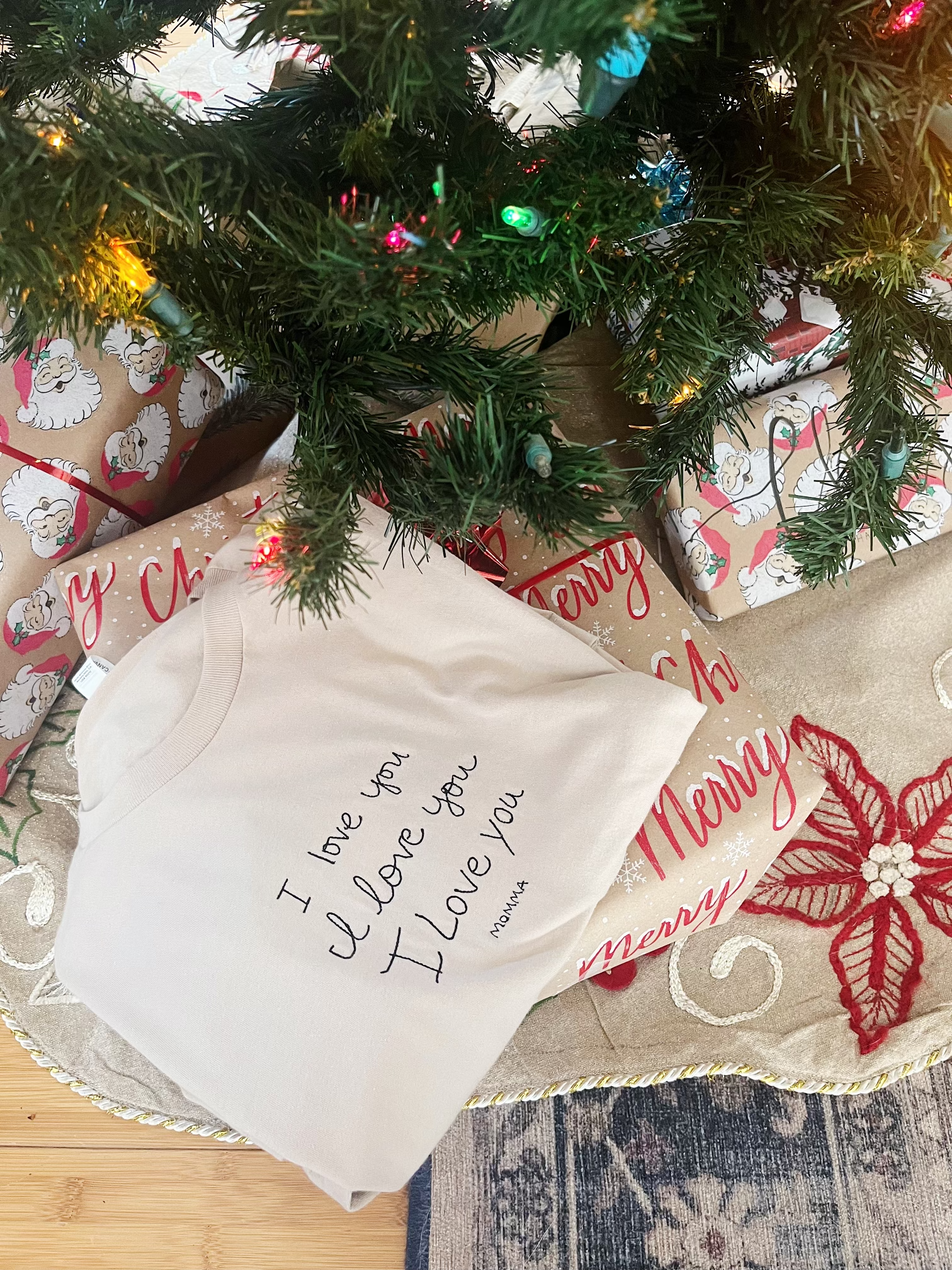 Looking for the perfect gift to give your bridesmaids or family member on the day of your wedding? Handwritten letters are such a meaningful gift that your family and friends will keep forever! Now, you can give it to them on a sweatshirt so they can keep it close to them forever!